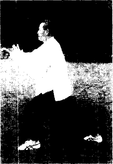 接上式(图28-6)的姿势,身体重心往后移,左腿屈