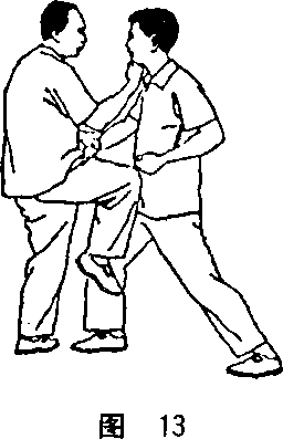 拿住敌腕莫轻放,衬脚摔跌不留情。