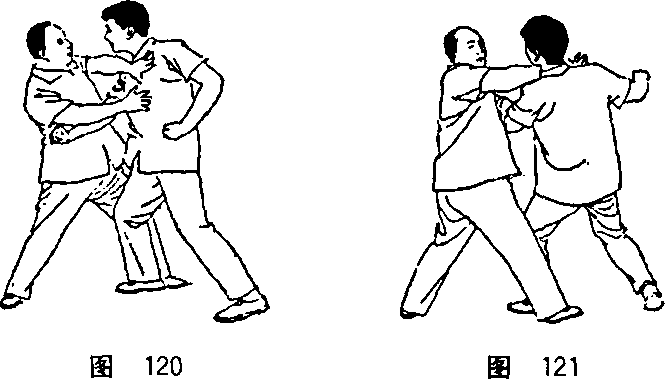 部、胃部,将彼向我左侧掷跌(图120)。