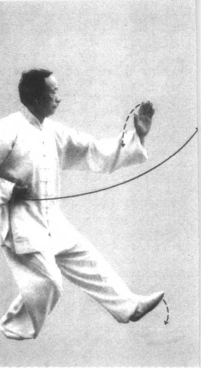 重心移至左腿,身体微 音