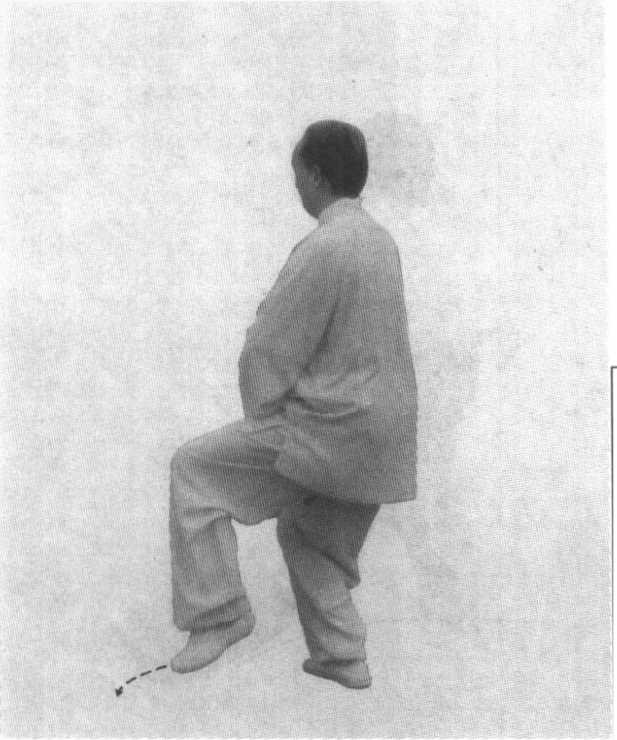 提脚时,左脚踏实立稳,左腿屈膝半蹲;右腿提膝、提脚,松胯。 具体要求参看前述太极拳五大要领。