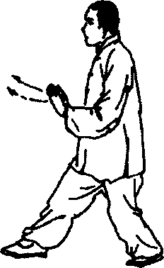 然,腿部的前弓后坐要稳健。迈步要轻灵平稳。在做撕、捋、 挤、按动作时,两脚掌不要随意扭动。