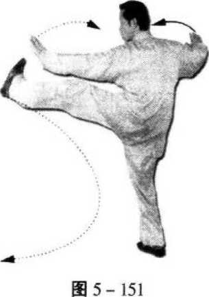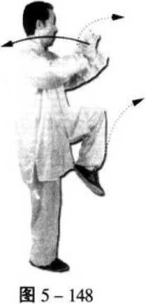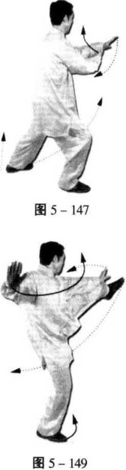 6. 与右分脚的动作3、4相同,但左右方向相反(图5- 148、5-149)。