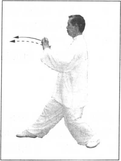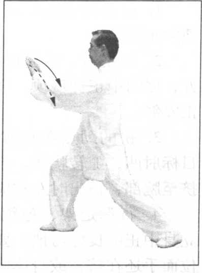 后抽回抹。此一过程,上下之弧不宜过大,手臂不宜 过分下沉,掌根略高于肘,顺势平直后移。
