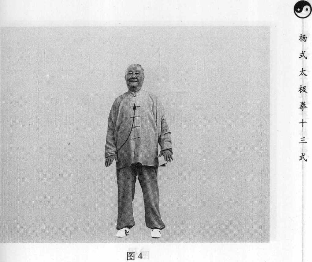 两臂自然下垂,手心向内,手 指朝下。眼看前方,神情安舒(图1 )。要点:头颈自然中正,下须微收,不可故意 挺胸或收腹,精神要集中。?杨i*..太:极拳?杨i*..太:极拳?杨i*..太:极拳?杨i*..太:极拳动作_ : 4 — A两臂内旋翻动,使手背朝前,手心向后,仍 置两胯旁,然后由下向前往上徐徐提起,与肩同化——太拳——丛——书化——太拳——丛——书化——太拳——丛——书化——太拳——丛——书宽,提至略与肩平,掌心向下,指尖朝前(图2、3)o —