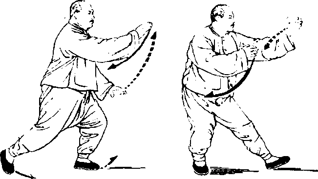 2 .右掌后撤收回时,要以腰为轴,-要松肩、坠肘、沉腕 这样节节贯串地收回;要以身领手,不可先将右掌撤回而不 顾肩时部分。