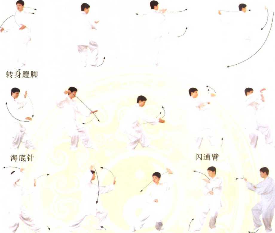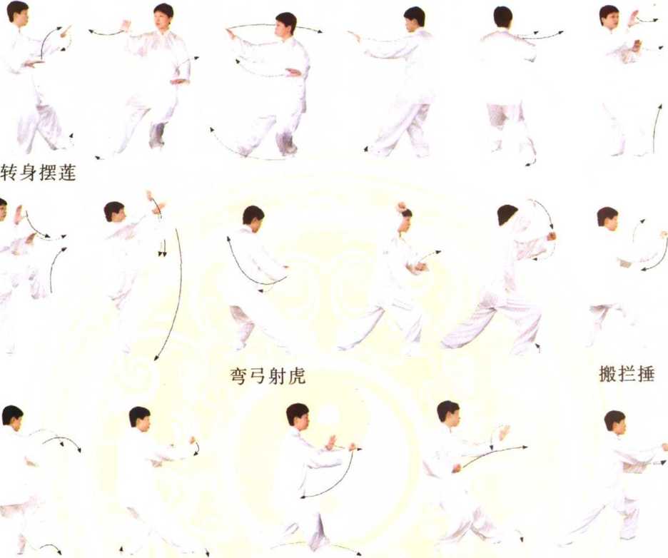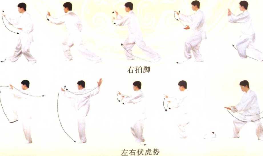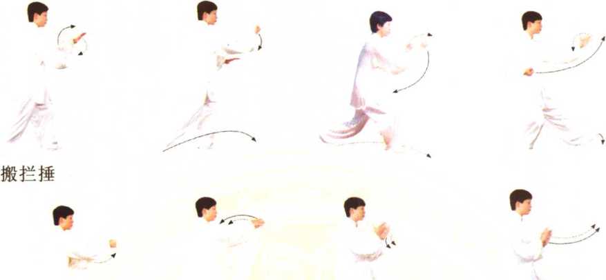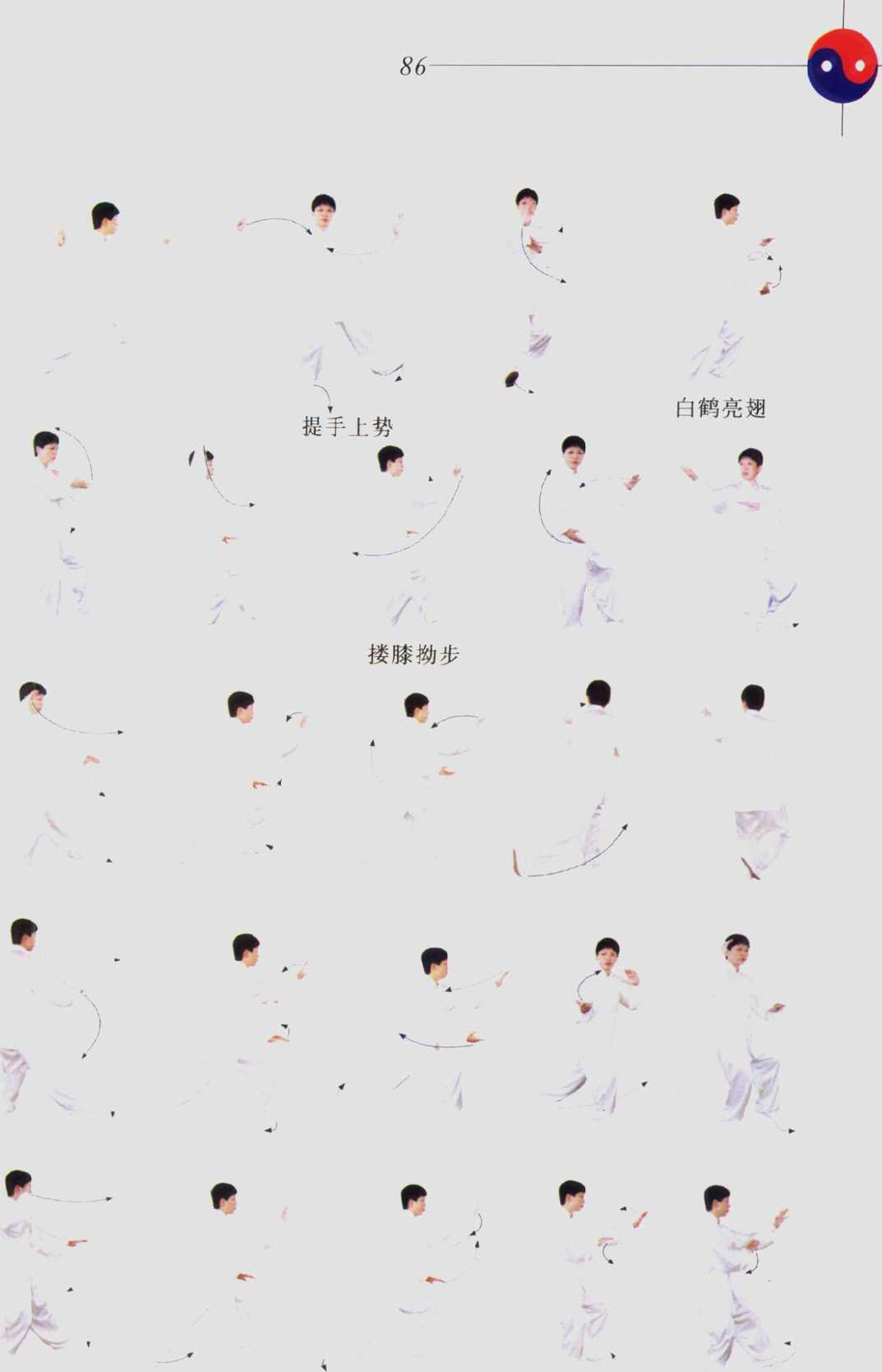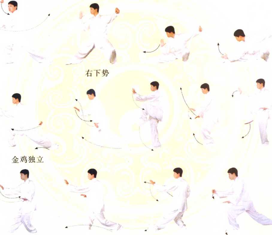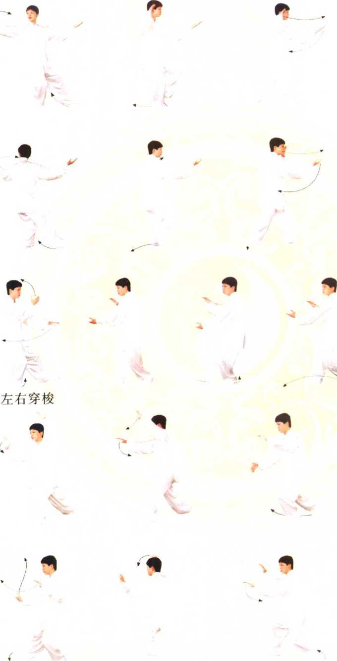 两掌向外翻转,掌心向下,掌指 向前,随即下落于两腿外侧,掌心向 下,掌指向前;左脚向右脚靠拢,成 并步站立;两掌指下垂;眼看前方。 (图234、235、236、237 )o【错误与纠正】错误:身体过于放松。纠正:两 掌下落时,提顶,立身,含胸拔背, 眼看前方。单鞭手挥琵琶倒卷肱左右野马分鬃90右蹬脚左分脚双峰贯耳高探马白蛇商信指裆捶揽雀尾退步跨虎94收势