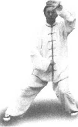 易犯错误:(1)转体幅度过大,身体向右倾倒。(2)身体前俯,耸肩,左臂 僵直。