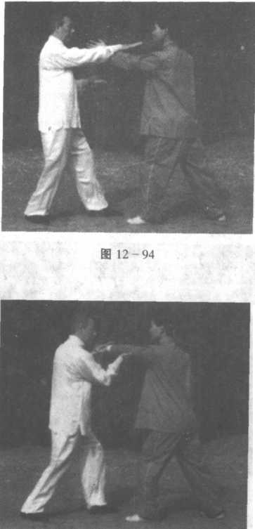 甲右臂里侧接甲戳来之右手。(图12-94)
