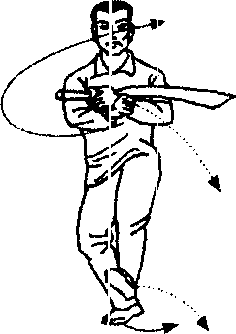* *放箭势踢法:武术上称箭弹,意即踢出去直如放箭而有 弹力。