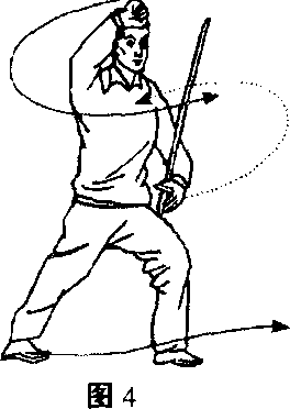 图3上升至右额前,臂呈半月形,左臂下降至左大腿外侧,刀尖朝 天,胸向东雨,眼视东南方。(图4)