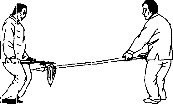 从我枪底下正中扎我腹,封、闭、提、拿皆不能用,待将后脚移 上,侧身横下,如锯截木。