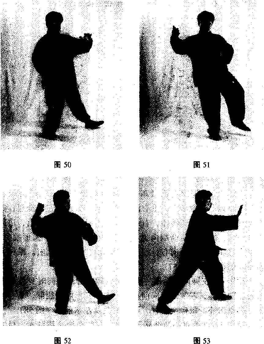 眼神稍顾及右拳下移,即渐渐向前平视(图55)。