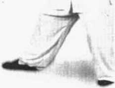 2. 重心全部移于左腿,右脚提起,身体仍向右松转。同时, 左掌经脸前由右小臂外弧形下落,右拳略向上向右前撇(图 121)o