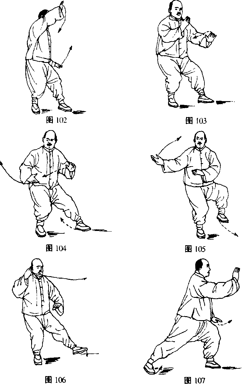 动作和要领与第七式“左搂膝拗步”相同。(图103、104、