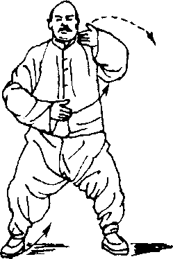 或设当我右(或左)腕糊采对方右(或左)手腕,对方欲意 抽回,我即上左(或右)步于对方右(或左)腿之后,左(或 右)手由下抄至对方腋下,以圆转劲拥出,得机时,以抖拍之劲 发出,尤为出奇制胜。