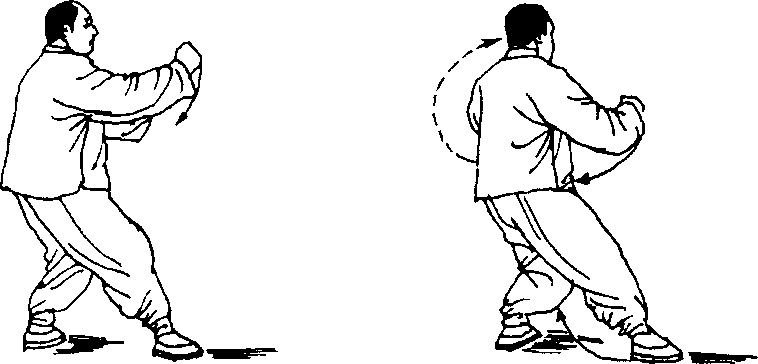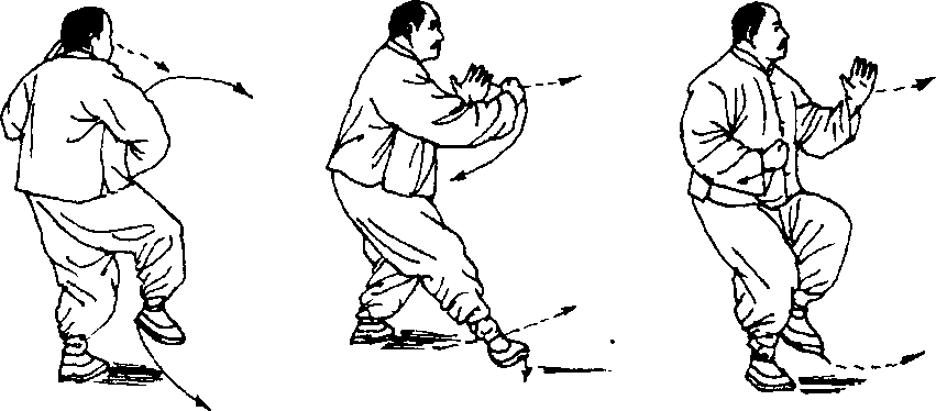动作2、3、4同第二十四式“撇身捶”动作2、3、4,唯方 向相反「(图 179、180、181)