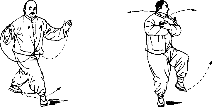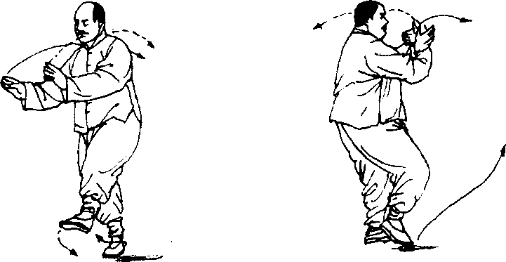 转身时右脚掌须在体松腿摆的动势配合下,才能迅速而稳定 地辗转,而不是局部断续地扭动。双手由开到合随转身同起同 止,不可先转后合,身体由高到低均匀沉着,不右忽高忽蹲。