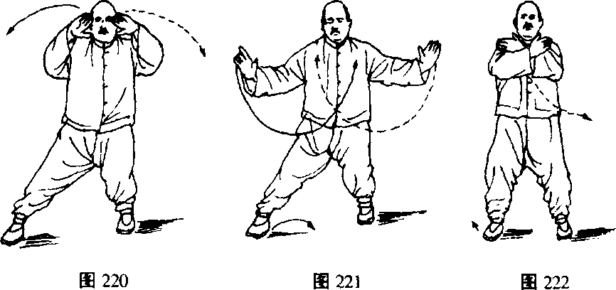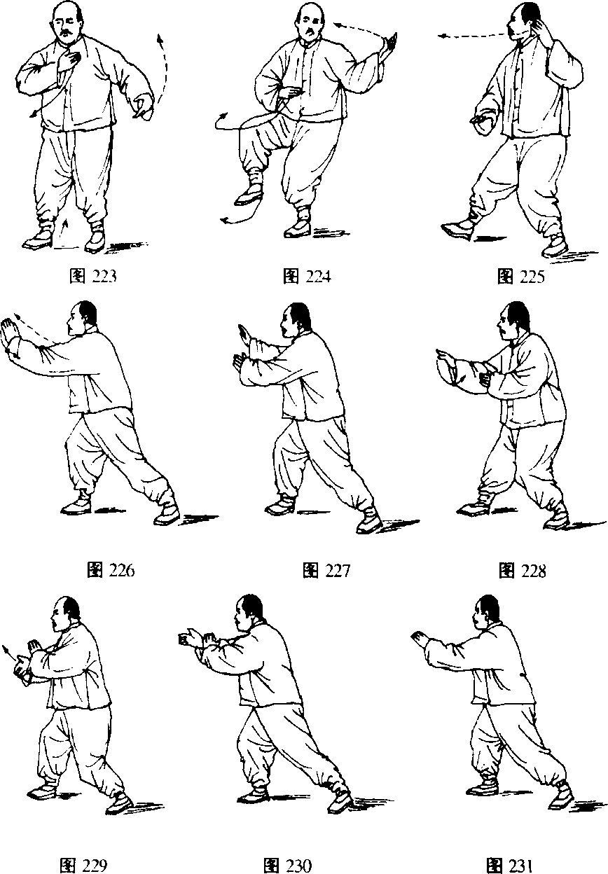 动作、要领及其它与第十四式“十字手”同。(图220、221、222)第四十七式抱虎归山动作、要领及其它与第十五式“抱虎归山”同。(图223~233)图232 图233