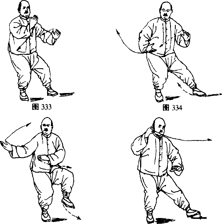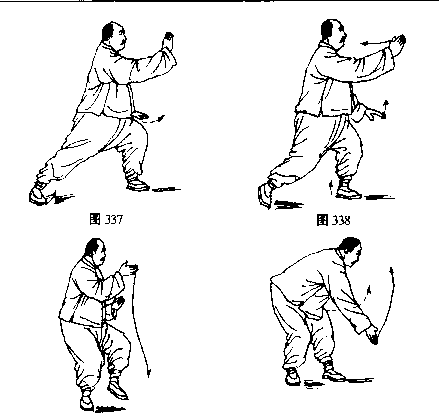与第七式“左搂膝拗步”同。(图333、334、335、336、 337)第六十四式海底针与第二十二式“海底针”同(图338、339、340)