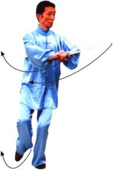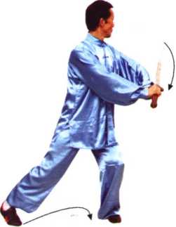 ④ 持剑与转身、合手与虚步,协调配合,同时到位。