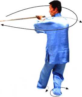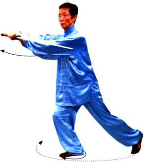 ③ 本势动作是从左向右后转体近一周后,面向起势方向,旋 转时身体要平稳连贯,速度均匀,不可停顿。方向为正南。
