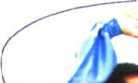 (6)虚步合手 左腿屈膝,右腿屈收下落在左脚侧脚尖点地; 左臂外旋翻掌平摆至体前,手心侧向上,手指朝前,右臂屈肘带动 右掌划弧回收至左肘下,手心向内,指尖朝左;同时右脚向右前方 (约30度)迈出成虚步,眼看右前方。(图257、258、259)