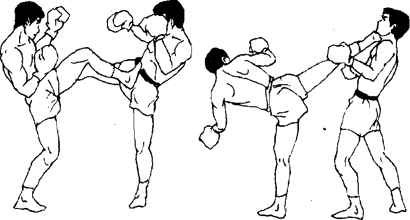 踢拳道既然以腿为主要制敌武器,拳手们对于腿击的道 理与运用,自然特别苦心钻研,抵御腿攻的防守方法,故相应 颇受重视。
