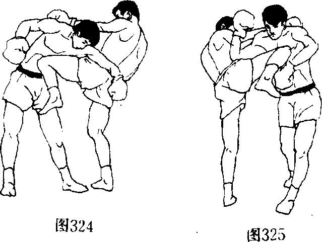 (1)如(图324、325)所示用中部侧膝攻击。
