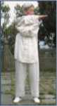 以上姿势做完将脚尖踮起站立闭目收神排除杂念顺其自然调息定气。当一切安定松静后由口缓缓吐气由鼻缓缓吸气行吐纳法3—5口。行功毕双脚猛震身体下沉