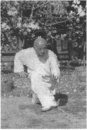 太极拳的旋动是它运动的一个重要方式。武派太极拳转腰时 首先尾闾旋转。因为武派最讲中心轴,从百会到会阴有个中心 轴,下端是会阴穴,也就是尾闾,它势必要处于正中,也就是中 心轴旋转。如果说腿,实腿以脚跟为轴,虚腿以脚尖为轴旋转。