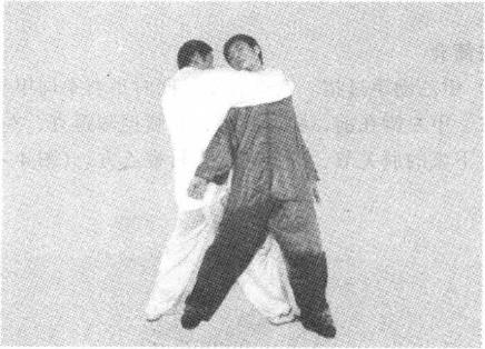 (四)拘颈时左手应抓住自己的右手腕以助劲力不能使对方颈部滑脱。