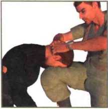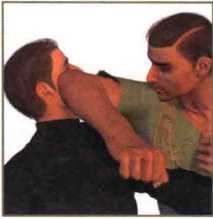 用手指猛推对手鼻根可轻松摆脱其纠缠。
