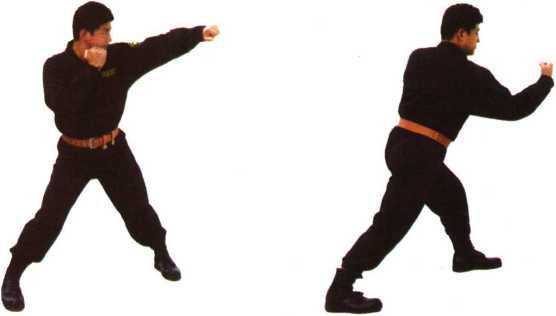 7 左摆拳——右勾拳(图42-1、图42-2)。