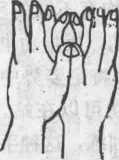 图 87-6图 87-6图 87-7图 87-7图 87-9图 87-9金刚三钻印:左手拇指与食指相捻, 成环状,三指并竖(中指,无名指,小 指),右手拇指与食指相捻,中指,无名 指,小指并竖。