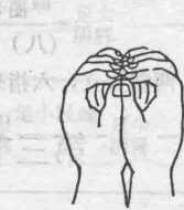 两掌竖立,六指外交叉,两食指以竖,两拇指并竖。