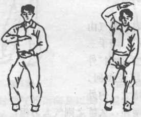 预备姿势:继抱球后,直立,双手成仰掌护腰待发势(图 126).