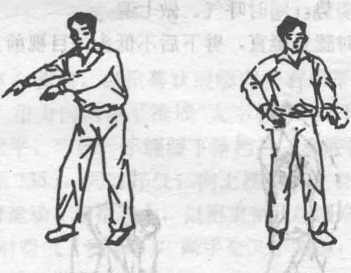 功理:本动作劲发于腰部,力运四 肢末稍,气走手、足三阴三阳经。久练 之则气走全身、百脉通畅。