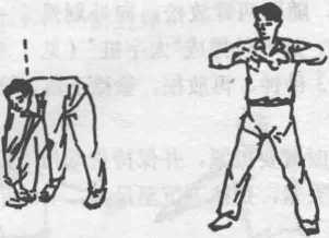 要求:弯腰捞月时两腿要挺直,不低头,目视前方;上身随 势而起时,要垂肩坠肘,颈部不僵直。