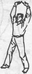要求:上举时臂要挺紧,并保持指端相对;对大字桩时,要 收腹挺胸,两腿夹紧,劲往下沉至足心,上肢用多大力,下肢亦 用多大劲。