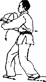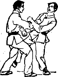 击法要点、承上势我右掌托击对方对方用手压盖我右手我即借其力用左拳盖压他手迅速抽回右点金拳点击对方胸部。〈图四117)