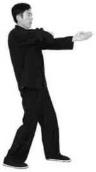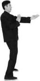 3 图4-299图4-299问手式如果继续做以上进马勾撞拳动作则按以上方法连续出拳即可如果是不再出拳随即两手可变成问手式(图4-303)。