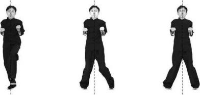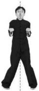 (—)动作1 二字指阳马先摆好正身二字指阳马式(图7-1)。2 图7-1图7-1左前撑腿然后身体适度放松左脚勾脚尖屈膝向上抬起右脚微屈支撑同时以左脚脚跟领先由屈到伸沿直线向中线前撑踹(蹬踹)击出呼气发力劲力达脚跟或脚底掌,眼视前方两手握拳保持不变。动作完成后迅速恢复二字指阳马式(图7-2-图7-7几图7-1图7-1咏春搏击功夫教程图7—2 图7—3 图7—4图7—5 图7—6 图7-7