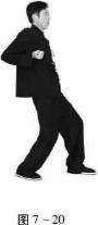 (一)动作1 侧身马先摆好侧身马或由正身二字指阳马式转身为侧身马(图7-20)。2 左前撑腿然后身体适度放松直接以左脚勾脚尖屈膝向上抬起右脚微屈支撑同时以左脚脚跟领先由屈到伸沿直线向中线前蹬踹击出呼气发力劲力达脚跟或脚底掌眼视前方两手握拳保持不变。动作完成后迅速恢复二字指阳马式图7-21 图7-22图7-24图7-24图7-23图7-24图7-24