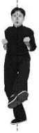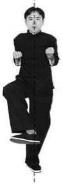 由斜踩腿配合二字指阳马式动作是锻炼基本的桩马姿势进行踢法练习。