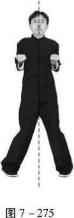 (一)动作1 二字指阳马先摆好正身二字指阳马式(图7-275)。2 左扫脚腿然后身体适度放松上体稍右转重心偏到右脚支撑左腿屈膝稍上抬,上体稍侧倾的同时展能以膝关节为轴左腿由屈到伸小腿加速由左向右从侧前低位勾扫踢出呼气发力劲力达脚背或脚踝前部位眼视攻击方向。动作完成迅速收脚落步恢复正身二字指阳马式(图7-276?图7-278)。