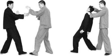 运用此类技法时要反应敏捷手法灵巧步快腰活险中制胜。即使精通擒锁法也要使技术在任何情况下都适合于任何人方可算作真正掌握了擒拿技法。