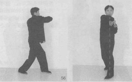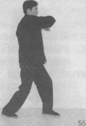 除了摆桩劈肘动作可以由正身钳阳马做左右手劈肘(图58、图59)