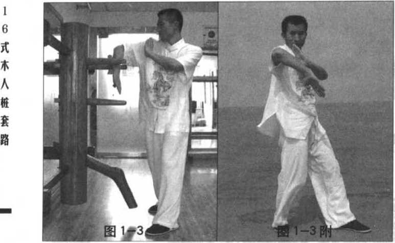 毒 内侧,此时左掌守护于胸前(图1-3),(图1-3附)为正面示范。
