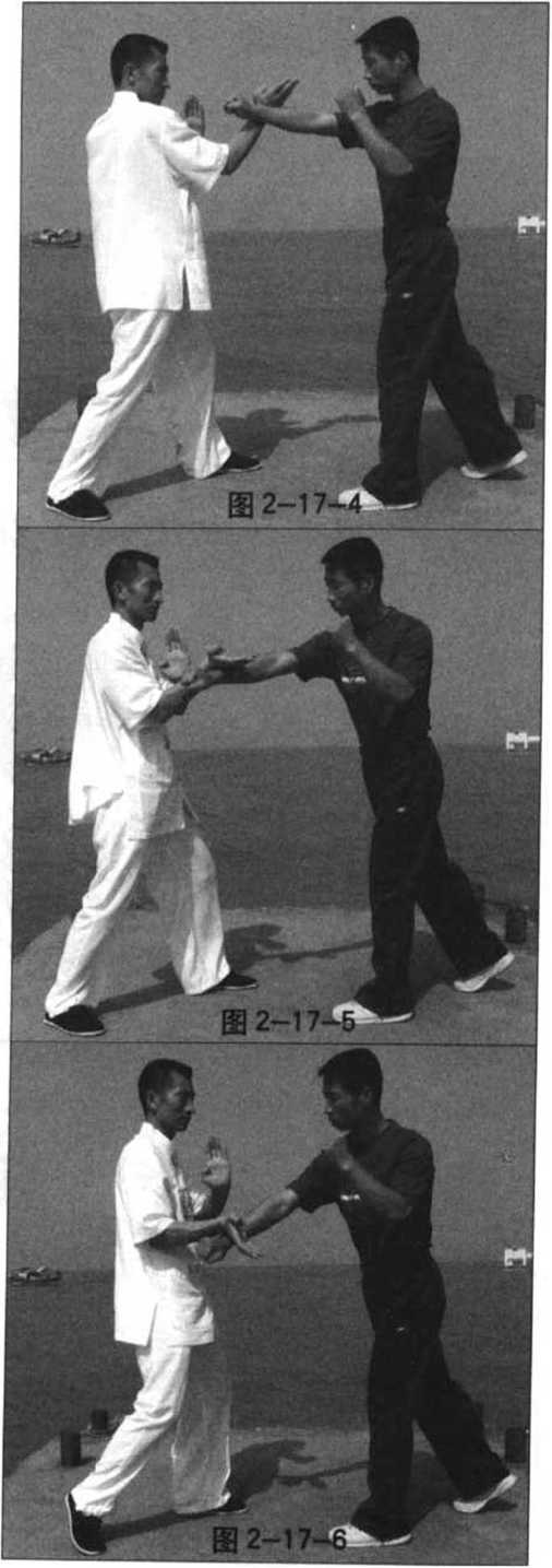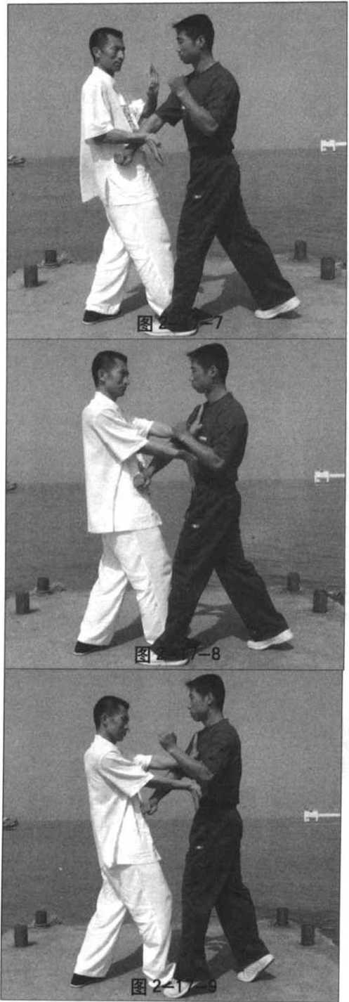 并顺势向右后方牵拉其右 臂,致使其右臂改变原来的攻击 目标(图2—17—5) $
